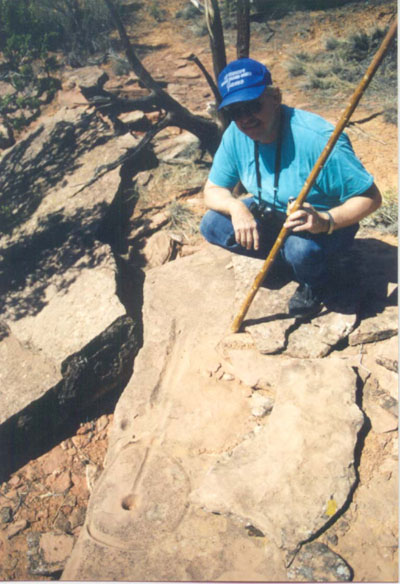 David Maxwell, Director of Southern Utah University's GIS/GPS Lab, offered this insight regarding the glyphs within hours of spending his first day with the team. Viewing the glyphs as a professional map maker, Dave pointed out that in order for these glyphs to function as navigational markers, they would have to function in both directions "going" or "returning" from a location. Having seen less than 7 glyphs, Dave hit upon something other team members had already witnessed... but not understood. If Dave's theory was correct, then the straight line would have to represent the topography in both directions. In other words, the glyph would have to be created and positioned in exactly the right location so that it could be read by travelers headed in either direction "moving" it even a few inches would destroy it's integrety.