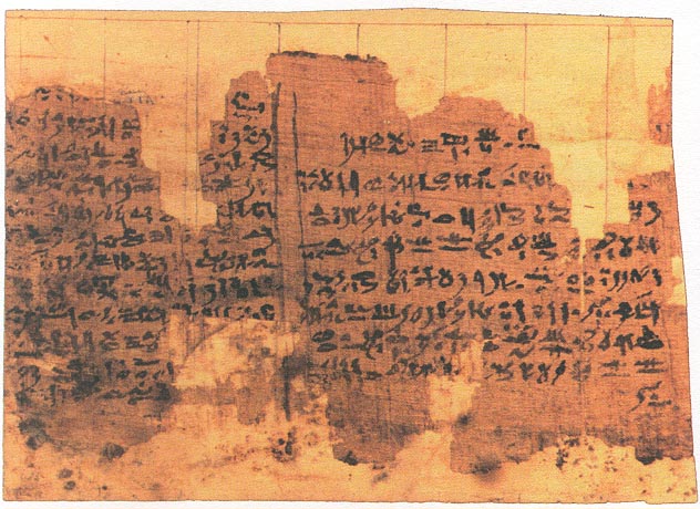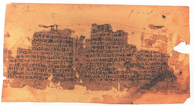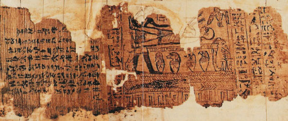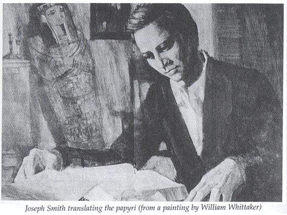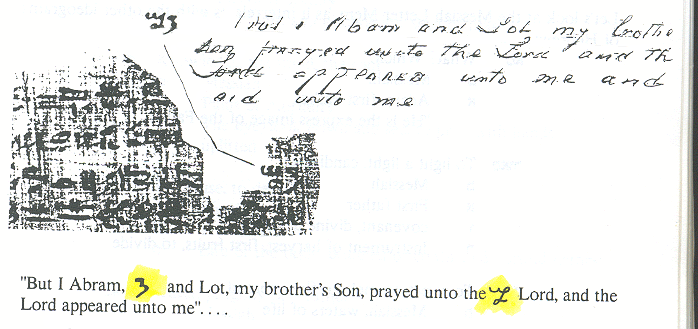 Smith appears to have been intent on keeping his part of the bargin, as there are many notes penned in the margins of the papyri by his scribes W. W. Phelps and Oliver Cowdery. [ Warren Parish was also later employed as a scribe] These notes are what were eventually compiled and became known as the "Egyptain Alphebet and Grammer" document or "Kirtland Egyptain Papers". Smith claimed that the material contained in the scrolls was encoded, and that the true meanings of the ideograms contained therein could be read on different "levels" or "degrees of understanding". Sampson claims this is refering to Kabbalah. After the Prophet's murder, Brigham Young, the new leader of the Mormon church, took his congregation west to the Salt Lake Valley in Utah. Smith's wife, Emma, and his children did not imagrate west with Brigham. They retained possesion of both the mummies and the scrolls. Eventually, the Smith family sold their collection to the Chicago Musuem, where it was assumed to have been destroyed in the great Chicago fire of 1871. However, in 1966, Dr. Aziz S. Atiya, a professor of Middle Eastern Studies, accidently discovered 22 seperate fragments of the origional papyri in the Metropolitan Museum of Art in New York City. Through special arrangment, these fragments were acquired by the Church of Jesus Christ of Latter Day Saints, and are now located at Brigham Young University. Robert C. Fillerup, has taken these scribe's notes, digitized and organized them alphebetically, according to Joseph's "Five levels" of understanding...
