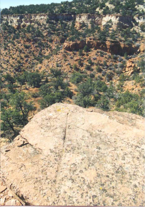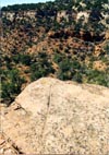 The first member of the team to actually see one of these glyphs was Dixon Spendlove. As a boy growing up in the area, he was shown the most commonly known example found on what was then "Judd" property in Johnson Canyon. This glyph is situated above a known ruin and very unique burial site, in which the bodies are interred in tubes, or circular shafts carved into the bedrock of the cave walls and floor. Stacked one on top of the other. At the time, only a few examples of the glyph were known to exist, and no one had any idea of their true purpose. Almost, everyone who had seen the glyph simply accepted that it was used as an "altar" or sacrificial stone in some ancient practice of "blood sacrifice" Stories were common of how the sacrifice was laid on the "altar" or circle portion of the glyph, their heart cut out and placed in the hole at back of the circle, letting the blood run in donw the straight line to the edge of cliff. Over time, such dramatic stories easily become local legends. The Southern Utah News published a series of articles by a local Scout leader Royce Young in the 1990's. One of which was about his local scout troop searching for these glyphs in Johnson Canyon. Young's scout troop found and mapped several glyphs that led them to the conclusions they published, including a second Solstice Marker theory. Our research team has actually located over 17 in Johnson Canyon alone, many of which are located in such a way that the center line is actually running uphill and away from the cliff edge...which sort of ruins the whole altar effect. Based on observations of the 128 known glyphs, this theory is not considered valid by our research team, and we do not agree with Royce's published theories. However, it makes a dramatic Indiana Jones type story, and many of the local residents still support this theory... perhaps because tourism is the area's main industry. <<BACK page 2 of 2